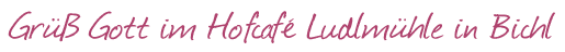 Genießen Sie die Ruhe und die herrliche Aussicht durch unseren Obstgarten in die Berge und das Loisachtal. Wir legen größten Wert auf Qualität und Regionalität unserer Zutaten. Wussten Sie, dass ... - es die Ludlmühle seit 1634 gibt. - Sie seit jeher ein Familienbetrieb ist - wir unser traditionelles Holzofenbrot nach einem uralten Rezept für Sie backen - unser Apfelsaft aus den eigenen, ungespritzten Äpfeln gepresst wird - Also Natur pur! - unser Geräuchertes hausgemacht ist - Sie unseren "Obatzten nach Art des Hauses" einfach probieren MÜSSEN - wir einen köstlichen Obstler aus eigenem, ungespritztem Obst in unserer Hofbrennerei herstellen - Sie bei uns Kaffee von der Kaffeerösterei DINZLER serviert bekommen - wir das köstliche Eis vom Beindlhof haben - wir immer Samstags, Sonn- und Feiertags für Sie geöffnet haben - unsere Kühe den ganzen Sommer über auf die Weiden getrieben werden und dort das saftige ![]() Genießen Sie bewusst die schöne Natur rund um unseren Hof und speichern Sie die tollen Eindrücke, die Sie bestimmt als kleine "Oasen" durch die Arbeitswoche begleiten werden. Öffnungszeiten: